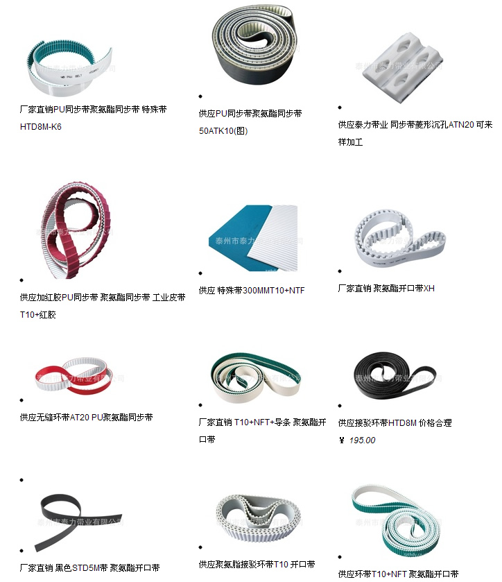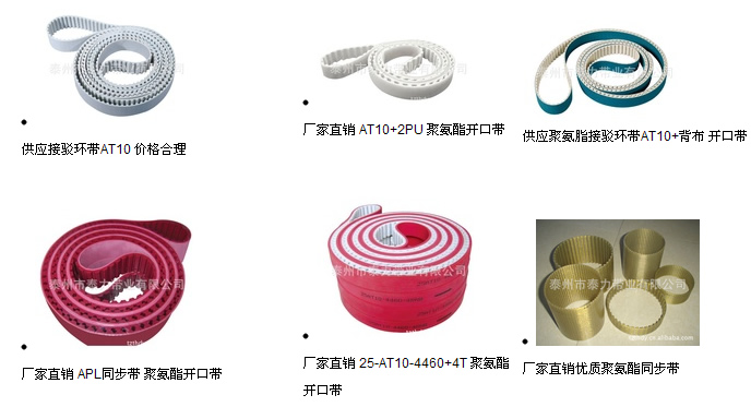 ![]() 聚氨酯PU夾化纖繩同步帶,以高強度低廷伸的化纖繩或鍍銅絲繩為骨架,聚氨酯澆注料包裹制成。 |